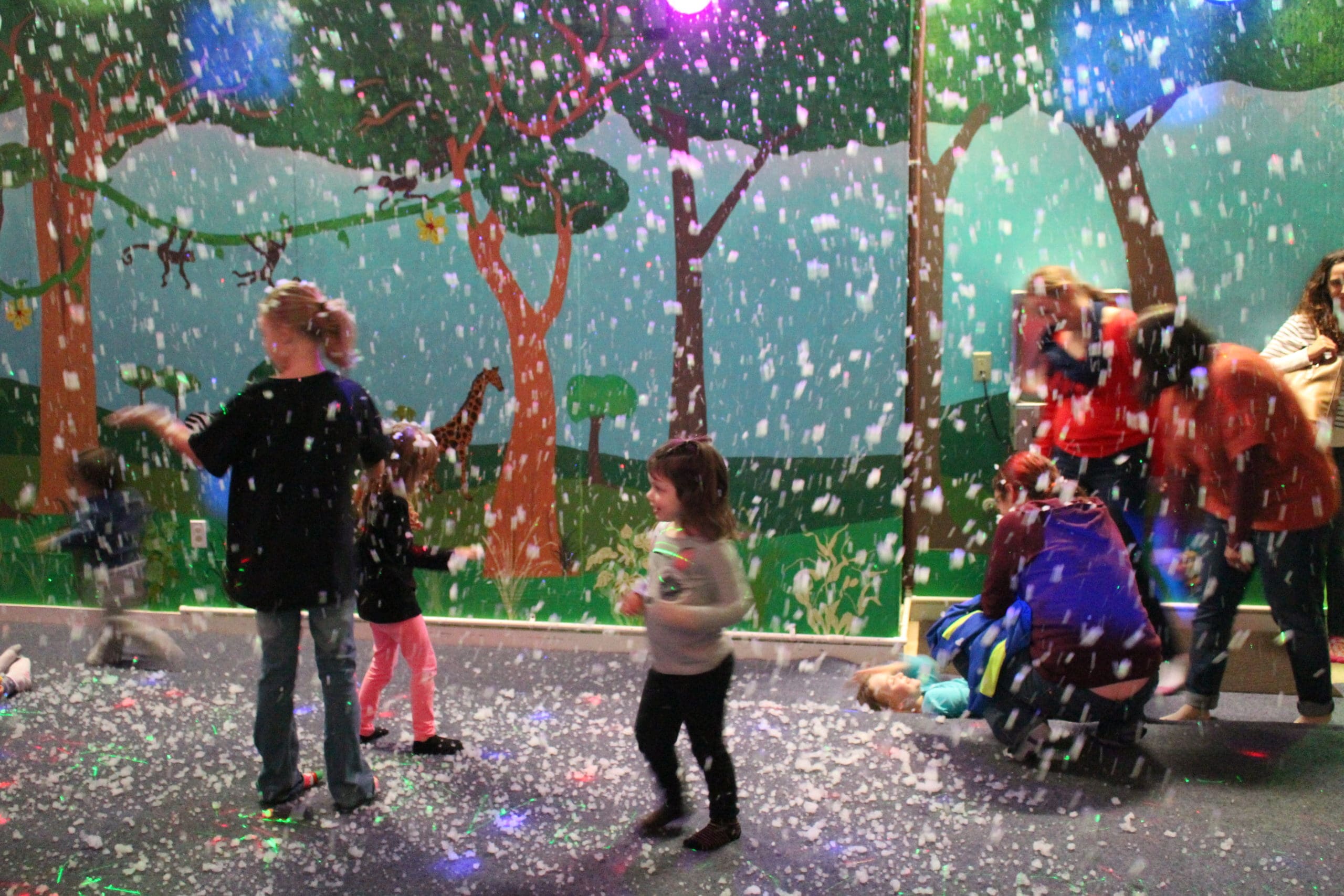 Mesmerizing, slow-falling snow flurries fall down all around your party-goers in the heart of our jungle room!